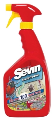 Sevin Insect Killer Ready to Spray kills more than 500 insect pests by contact on ornamentals flowers vegetables and fruits as well as in lawns and around your homes perimeter.