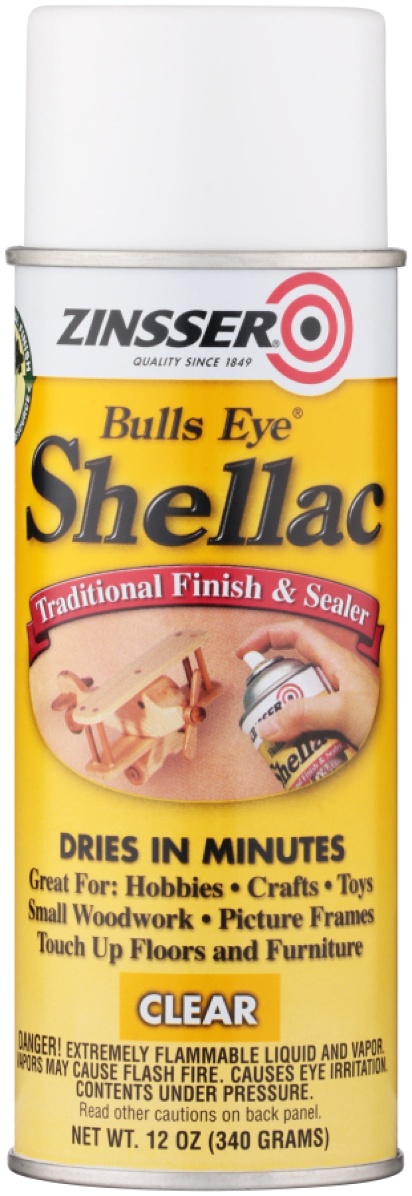 Rust-Oleum Zinsser 408 Bulls Eye Clear Shellac Spray 12 oz. Zinsser Bulls Eye Shellac Traditional Finish Sealer Spray 12 Oz. Their Sealcoat and the aerosol spray can shellacs do not contain wax.
