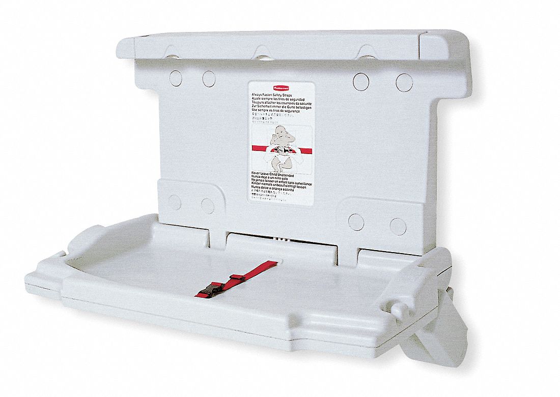 Country of Origin is subject to change. Rubbermaid 7818-88 Sturdy Station 2 Baby Changing Table - Platinum. Pulls down from wall closes to 335 x 215 x 4. Rubbermaid Sturdy Station 2 Baby Changing Table 335 x 215 Platinum. Rubbermaid as the manufacturer and you as the service provider are responsible for insuring that this product will provide the user with a safe and easy-to-use baby changing table. Laminated two-ply tissue paper. Rubbermaid Horizontal Baby Changing Station. The Rubbermaid Commercial Horizontal Baby Changing Station is designed for commercial environments. Large deep bed with adjustable safety belt.