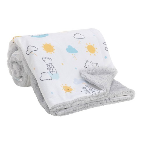 Winnie The Pooh Personalised Disney Applique Super Soft Fleece Baby Blanket Choice of 5 Blanket Colours Available at Customisation Point 50 out of 5 stars 1 1500 15. Coordinates with the full line of Winnie the pooh hello sunshine nursery bedding. Measures 30 x 40 and is made of snuggly soft fabrics with a cuddly gray sherpa on the back.