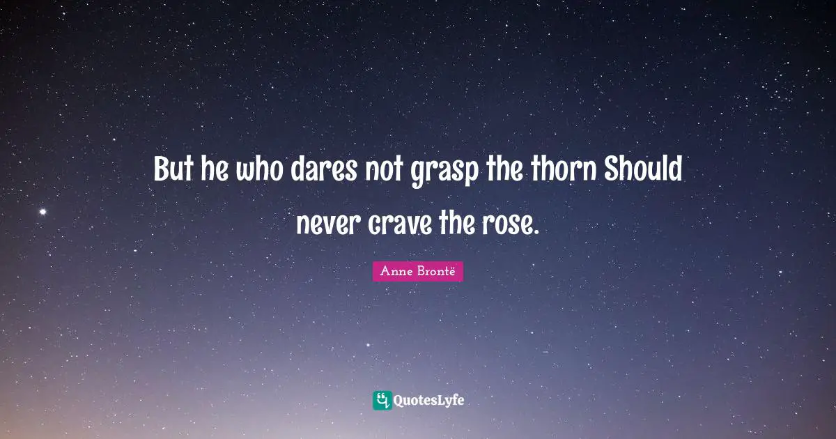 Download or share this Anne Brontë quote with your friends on facebook linkedin whatsapp twitter and on other social media. Bright hopes and pure delights Upon his course may beam And there amid the sternest heights The sweetest flowerets gleam. But he that Dares not Grasp the Thorn.