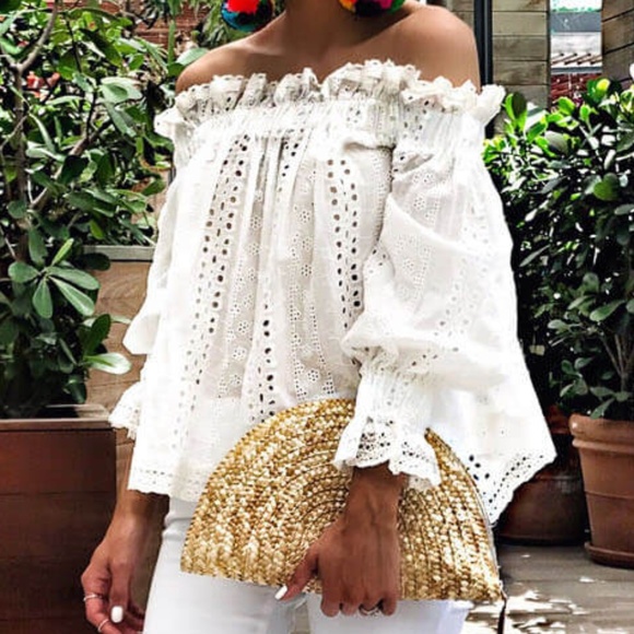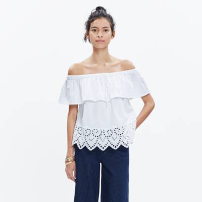Eyelet off the shoulder top. Also set Sale Alerts and shop Exclusive Offers only on ShopStyle. An elasticized off-the-shoulder neckline tops a relaxed eyelet lace woven bodice and short puff sleeves with more elastic cuffs. There were so many instances this weekend where we were dressed up and I didnt capture a single photo.