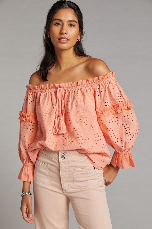 Shop 31 top off the shoulder eyelet tops and earn Cash Back all in one place. Now that we think about it the Because Youre Mine Black Eyelet Cold Shoulder Top is our favorite. Only Shery Eyelet Off the Shoulder Top 45. The Kaylee White Eyelet Off-the-Shoulder Crop Top will bring sunshine to your day. Up to 40 Off at Nordstrom. Split long sleeves with beaded drawstring cuffs. Eyelet Embroidered Cotton Peasant Top.