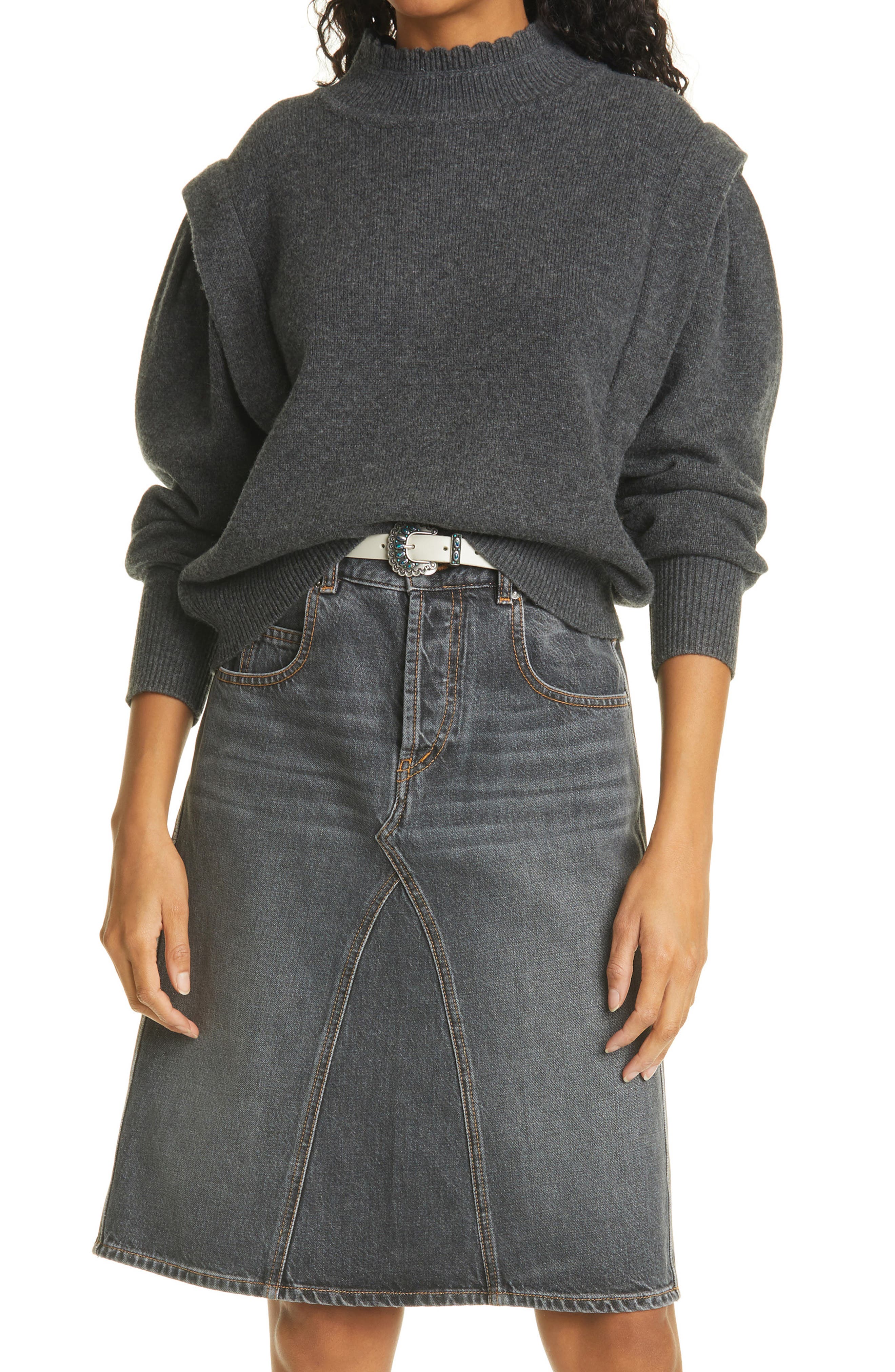 Isabel marant kevy sweater. Aproveite o Frete Grátis. Long sleeve rib knit stretch wool-blend sweater in off-white. 22in 56cm from shoulder.