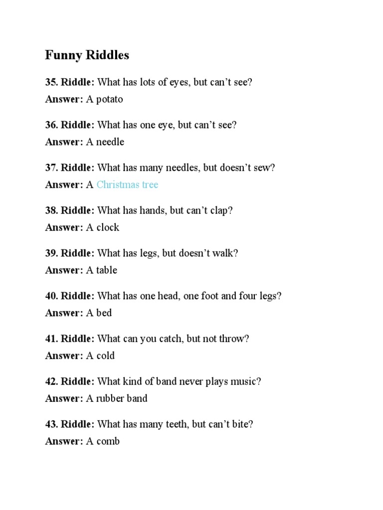 Holds flowers withour soil and has food regularly but never eats. What I Am Riddles. On most days he could only ride the elevator to the fifteenth story and he would have to walk the rest of the way. I have a head But I cannot think Riddle - FAQs The answer to this riddle is A Candle. What has head but Cannot think. A chair is an object which has four legs. I have four legs but never walk I may be covered in flowers but have no soil I hold food three times a day but never eat a.